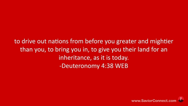 to drive out nations from before you greater and mightier than you, to bring you in, to give you their land for an inheritance, as it is today. -Deuteronomy 4:38 WEB