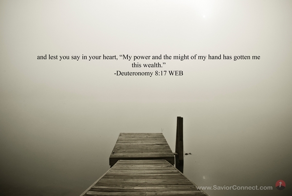 and lest you say in your heart, “My power and the might of my hand has gotten me this wealth.” -Deuteronomy 8:17 WEB