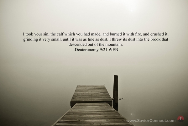 I took your sin, the calf which you had made, and burned it with fire, and crushed it, grinding it very small, until it was as fine as dust. I threw its dust into the brook that descended out of the mountain. -Deuteronomy 9:21 WEB