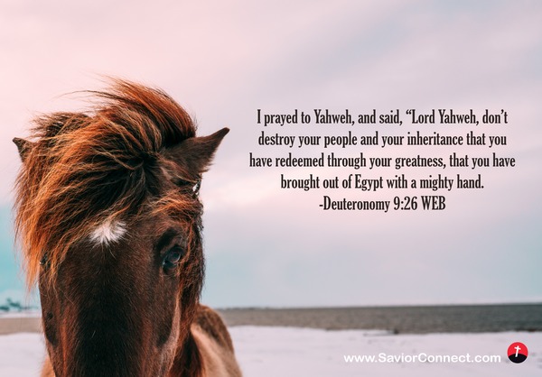 I prayed to Yahweh, and said, “Lord Yahweh, don’t destroy your people and your inheritance that you have redeemed through your greatness, that you have brought out of Egypt with a mighty hand. -Deuteronomy 9:26 WEB