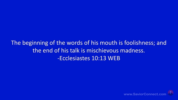 The beginning of the words of his mouth is foolishness; and the end of his talk is mischievous madness. -Ecclesiastes 10:13 WEB
