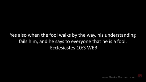 Yes also when the fool walks by the way, his understanding fails him, and he says to everyone that he is a fool. -Ecclesiastes 10:3 WEB