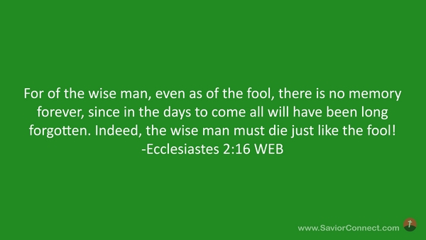 For of the wise man, even as of the fool, there is no memory forever, since in the days to come all will have been long forgotten. Indeed, the wise man must die just like the fool! -Ecclesiastes 2:16 WEB
