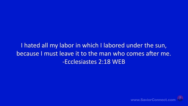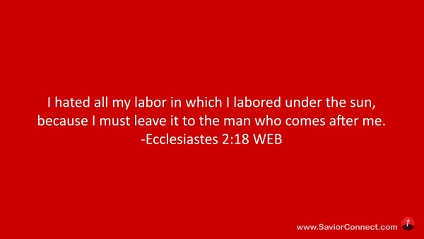 I hated all my labor in which I labored under the sun, because I must leave it to the man who comes after me. -Ecclesiastes 2:18 WEB