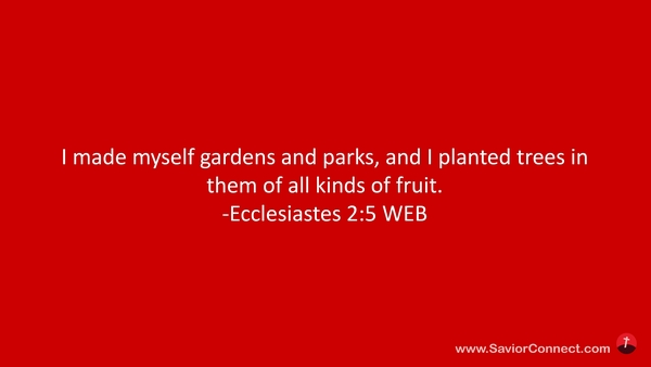 I made myself gardens and parks, and I planted trees in them of all kinds of fruit. -Ecclesiastes 2:5 WEB