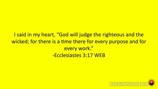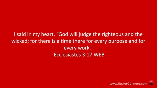 I said in my heart, “God will judge the righteous and the wicked; for there is a time there for every purpose and for every work.” -Ecclesiastes 3:17 WEB