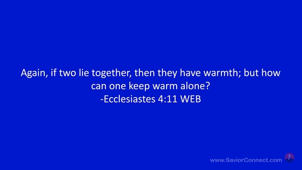Again, if two lie together, then they have warmth; but how can one keep warm alone? -Ecclesiastes 4:11 WEB