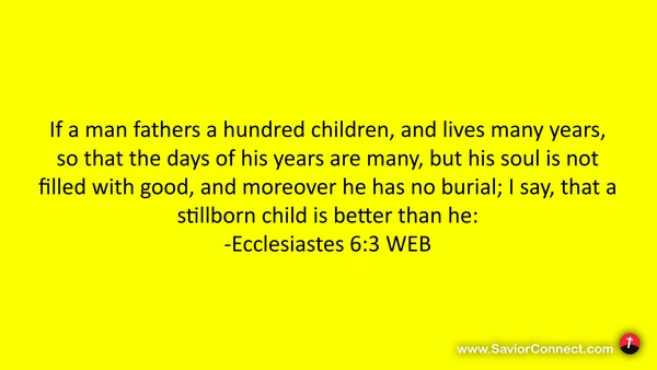 If a man fathers a hundred children, and lives many years, so that the days of his years are many, but his soul is not filled with good, and moreover he has no burial; I say, that a stillborn child is better than he: -Ecclesiastes 6:3 WEB
