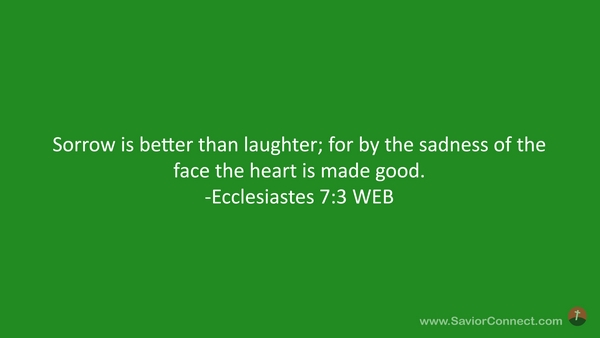 Sorrow is better than laughter; for by the sadness of the face the heart is made good. -Ecclesiastes 7:3 WEB