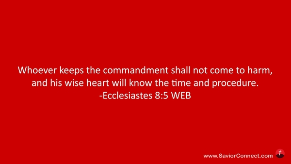 Whoever keeps the commandment shall not come to harm, and his wise heart will know the time and procedure. -Ecclesiastes 8:5 WEB