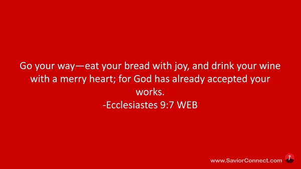 Go your way—eat your bread with joy, and drink your wine with a merry heart; for God has already accepted your works. -Ecclesiastes 9:7 WEB