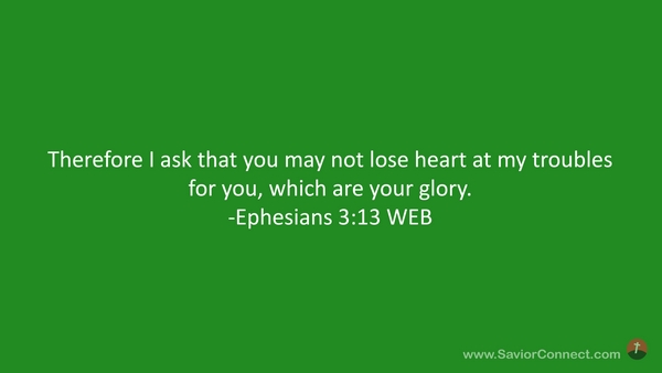 Therefore I ask that you may not lose heart at my troubles for you, which are your glory. -Ephesians 3:13 WEB