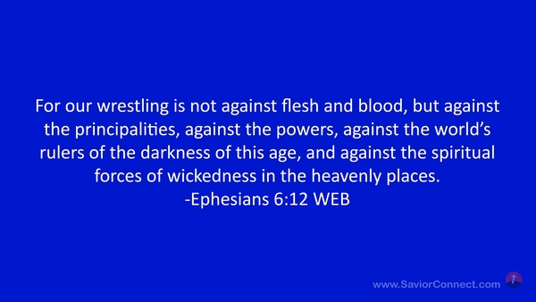 For our wrestling is not against flesh and blood, but against the principalities, against the powers, against the world’s rulers of the darkness of this age, and against the spiritual forces of wickedness in the heavenly places. -Ephesians 6:12 WEB