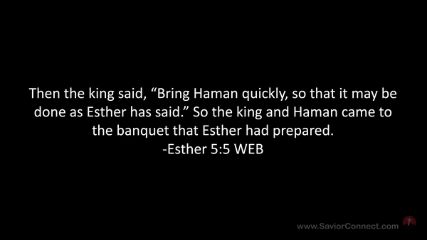 Then the king said, “Bring Haman quickly, so that it may be done as Esther has said.” So the king and Haman came to the banquet that Esther had prepared. -Esther 5:5 WEB