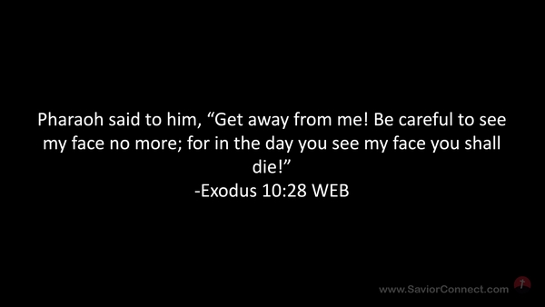 Pharaoh said to him, “Get away from me! Be careful to see my face no more; for in the day you see my face you shall die!” -Exodus 10:28 WEB