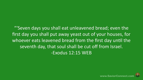 “'Seven days you shall eat unleavened bread; even the first day you shall put away yeast out of your houses, for whoever eats leavened bread from the first day until the seventh day, that soul shall be cut off from Israel. -Exodus 12:15 WEB