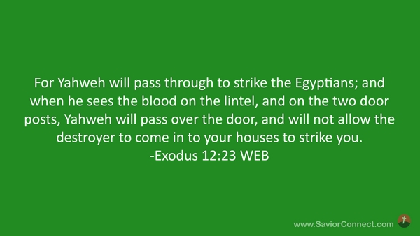 For Yahweh will pass through to strike the Egyptians; and when he sees the blood on the lintel, and on the two door posts, Yahweh will pass over the door, and will not allow the destroyer to come in to your houses to strike you. -Exodus 12:23 WEB