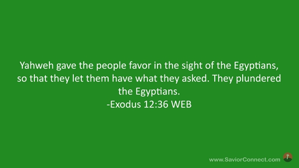 Yahweh gave the people favor in the sight of the Egyptians, so that they let them have what they asked. They plundered the Egyptians. -Exodus 12:36 WEB
