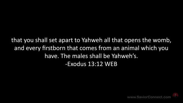 that you shall set apart to Yahweh all that opens the womb, and every firstborn that comes from an animal which you have. The males shall be Yahweh’s. -Exodus 13:12 WEB