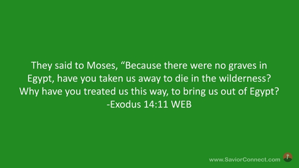 They said to Moses, “Because there were no graves in Egypt, have you taken us away to die in the wilderness? Why have you treated us this way, to bring us out of Egypt? -Exodus 14:11 WEB