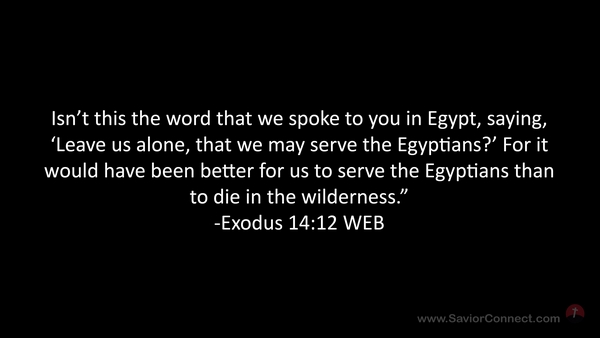 Isn’t this the word that we spoke to you in Egypt, saying, 'Leave us alone, that we may serve the Egyptians?’ For it would have been better for us to serve the Egyptians than to die in the wilderness.” -Exodus 14:12 WEB