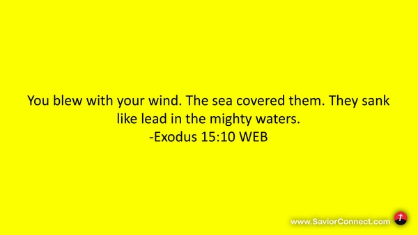 You blew with your wind. The sea covered them. They sank like lead in the mighty waters. -Exodus 15:10 WEB