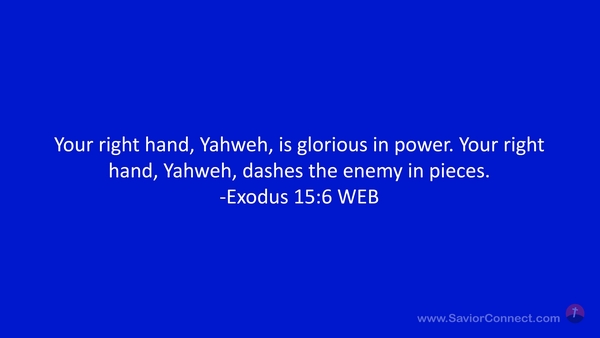 Your right hand, Yahweh, is glorious in power. Your right hand, Yahweh, dashes the enemy in pieces. -Exodus 15:6 WEB