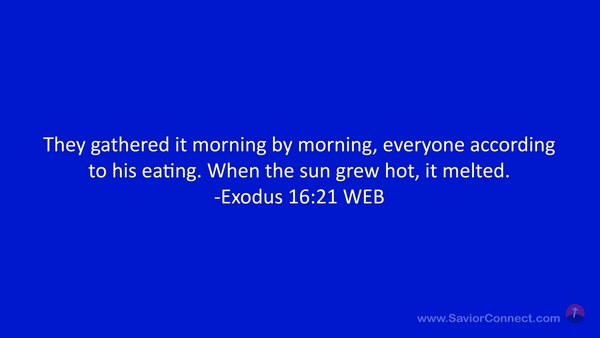 They gathered it morning by morning, everyone according to his eating. When the sun grew hot, it melted. -Exodus 16:21 WEB