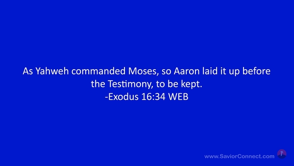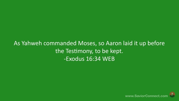 As Yahweh commanded Moses, so Aaron laid it up before the Testimony, to be kept. -Exodus 16:34 WEB