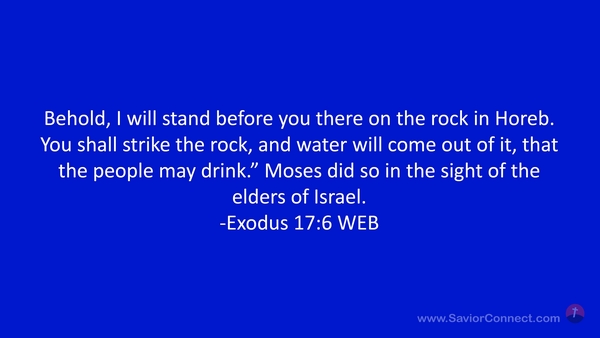 Behold, I will stand before you there on the rock in Horeb. You shall strike the rock, and water will come out of it, that the people may drink.” Moses did so in the sight of the elders of Israel. -Exodus 17:6 WEB