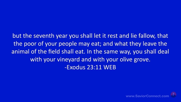but the seventh year you shall let it rest and lie fallow, that the poor of your people may eat; and what they leave the animal of the field shall eat. In the same way, you shall deal with your vineyard and with your olive grove. -Exodus 23:11 WEB