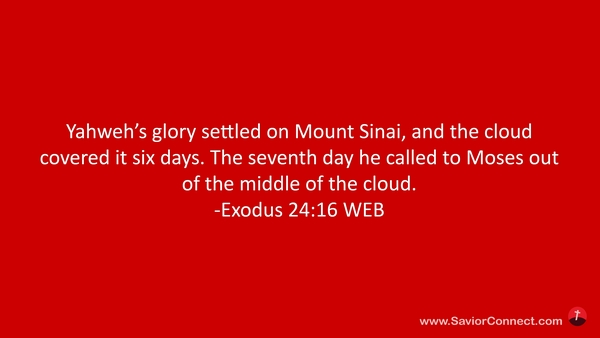 Yahweh’s glory settled on Mount Sinai, and the cloud covered it six days. The seventh day he called to Moses out of the middle of the cloud. -Exodus 24:16 WEB