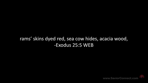 rams’ skins dyed red, sea cow hides, acacia wood, -Exodus 25:5 WEB