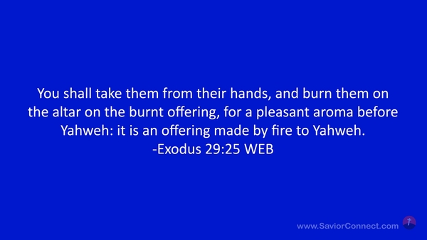 You shall take them from their hands, and burn them on the altar on the burnt offering, for a pleasant aroma before Yahweh: it is an offering made by fire to Yahweh. -Exodus 29:25 WEB