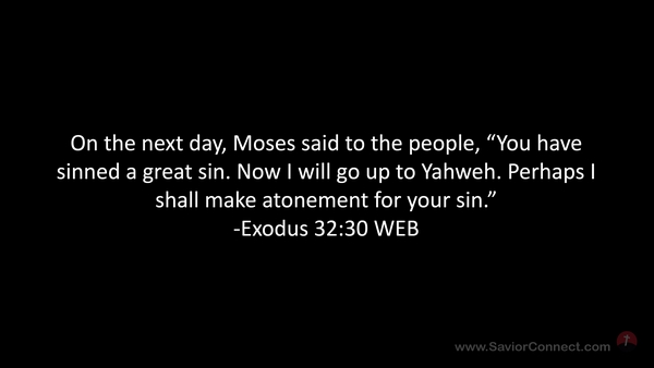 On the next day, Moses said to the people, “You have sinned a great sin. Now I will go up to Yahweh. Perhaps I shall make atonement for your sin.” -Exodus 32:30 WEB