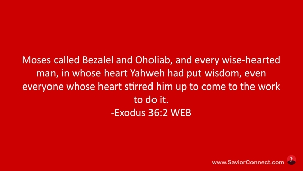 Moses called Bezalel and Oholiab, and every wise-hearted man, in whose heart Yahweh had put wisdom, even everyone whose heart stirred him up to come to the work to do it. -Exodus 36:2 WEB