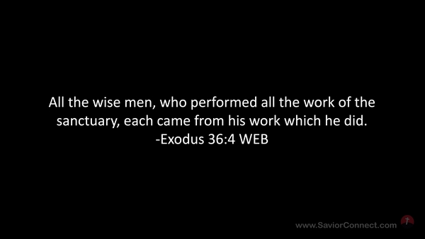 All the wise men, who performed all the work of the sanctuary, each came from his work which he did. -Exodus 36:4 WEB