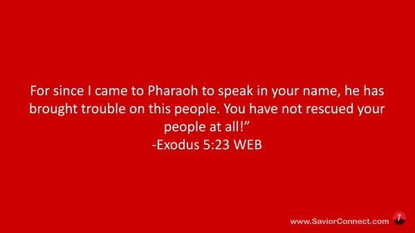For since I came to Pharaoh to speak in your name, he has brought trouble on this people. You have not rescued your people at all!” -Exodus 5:23 WEB