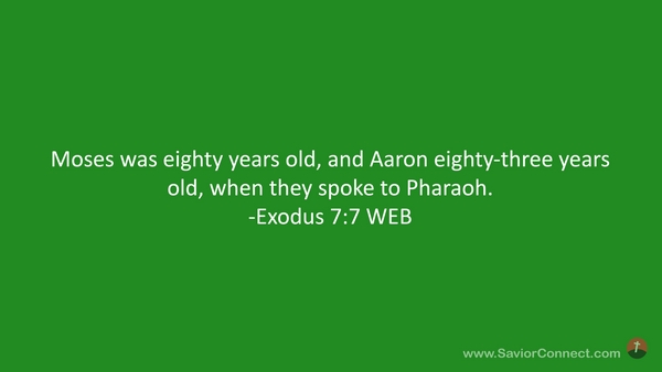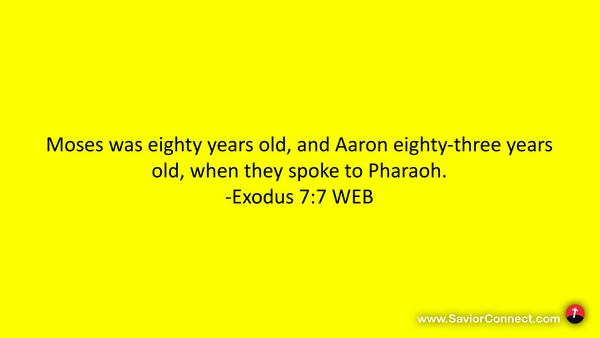 Moses was eighty years old, and Aaron eighty-three years old, when they spoke to Pharaoh. -Exodus 7:7 WEB