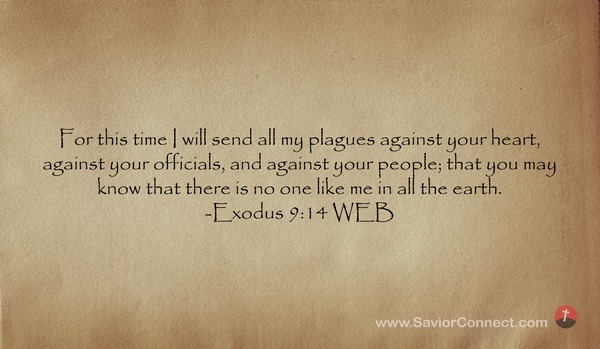 For this time I will send all my plagues against your heart, against your officials, and against your people; that you may know that there is no one like me in all the earth. -Exodus 9:14 WEB
