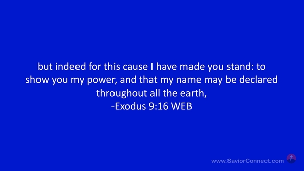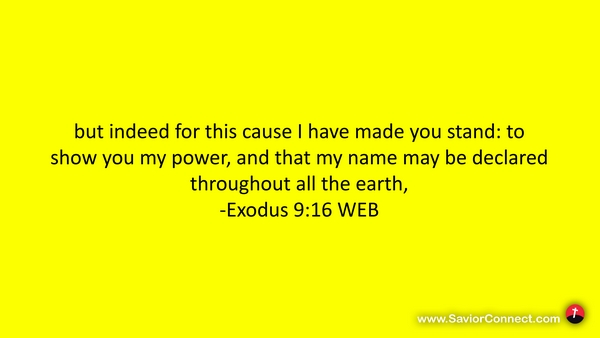 but indeed for this cause I have made you stand: to show you my power, and that my name may be declared throughout all the earth, -Exodus 9:16 WEB