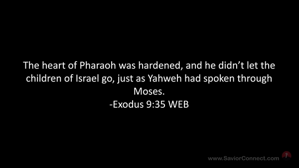 The heart of Pharaoh was hardened, and he didn’t let the children of Israel go, just as Yahweh had spoken through Moses. -Exodus 9:35 WEB