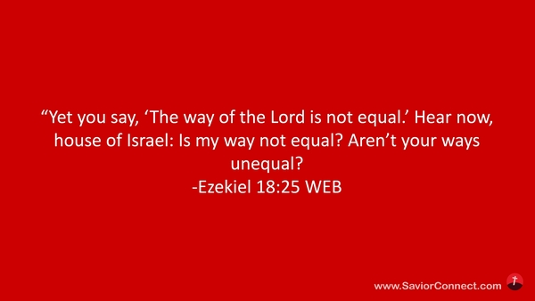 “Yet you say, 'The way of the Lord is not equal.’ Hear now, house of Israel: Is my way not equal? Aren’t your ways unequal? -Ezekiel 18:25 WEB
