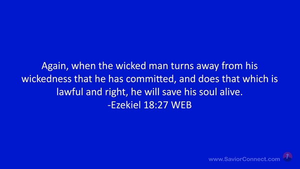 Again, when the wicked man turns away from his wickedness that he has committed, and does that which is lawful and right, he will save his soul alive. -Ezekiel 18:27 WEB