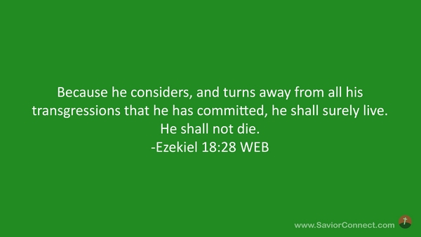 Because he considers, and turns away from all his transgressions that he has committed, he shall surely live. He shall not die. -Ezekiel 18:28 WEB