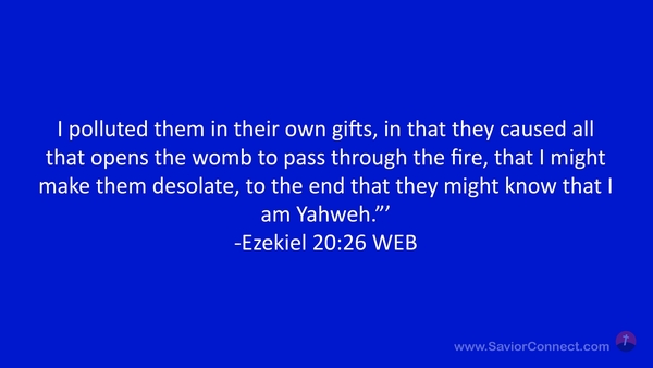 I polluted them in their own gifts, in that they caused all that opens the womb to pass through the fire, that I might make them desolate, to the end that they might know that I am Yahweh.”’ -Ezekiel 20:26 WEB