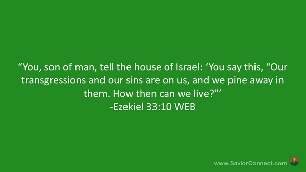 “You, son of man, tell the house of Israel: 'You say this, “Our transgressions and our sins are on us, and we pine away in them. How then can we live?”’ -Ezekiel 33:10 WEB