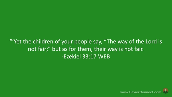 “'Yet the children of your people say, “The way of the Lord is not fair;” but as for them, their way is not fair. -Ezekiel 33:17 WEB