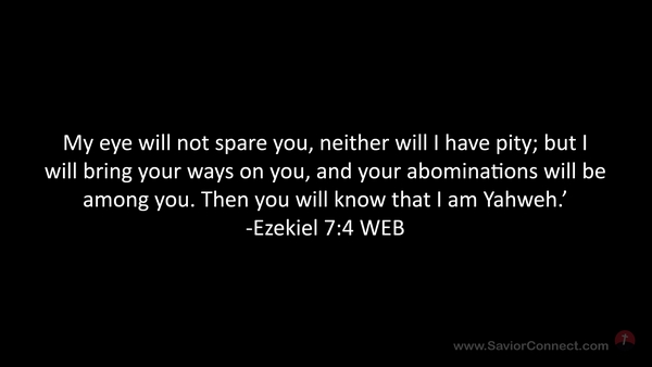 My eye will not spare you, neither will I have pity; but I will bring your ways on you, and your abominations will be among you. Then you will know that I am Yahweh.’ -Ezekiel 7:4 WEB
