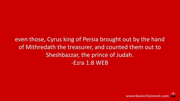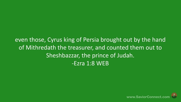 even those, Cyrus king of Persia brought out by the hand of Mithredath the treasurer, and counted them out to Sheshbazzar, the prince of Judah. -Ezra 1:8 WEB